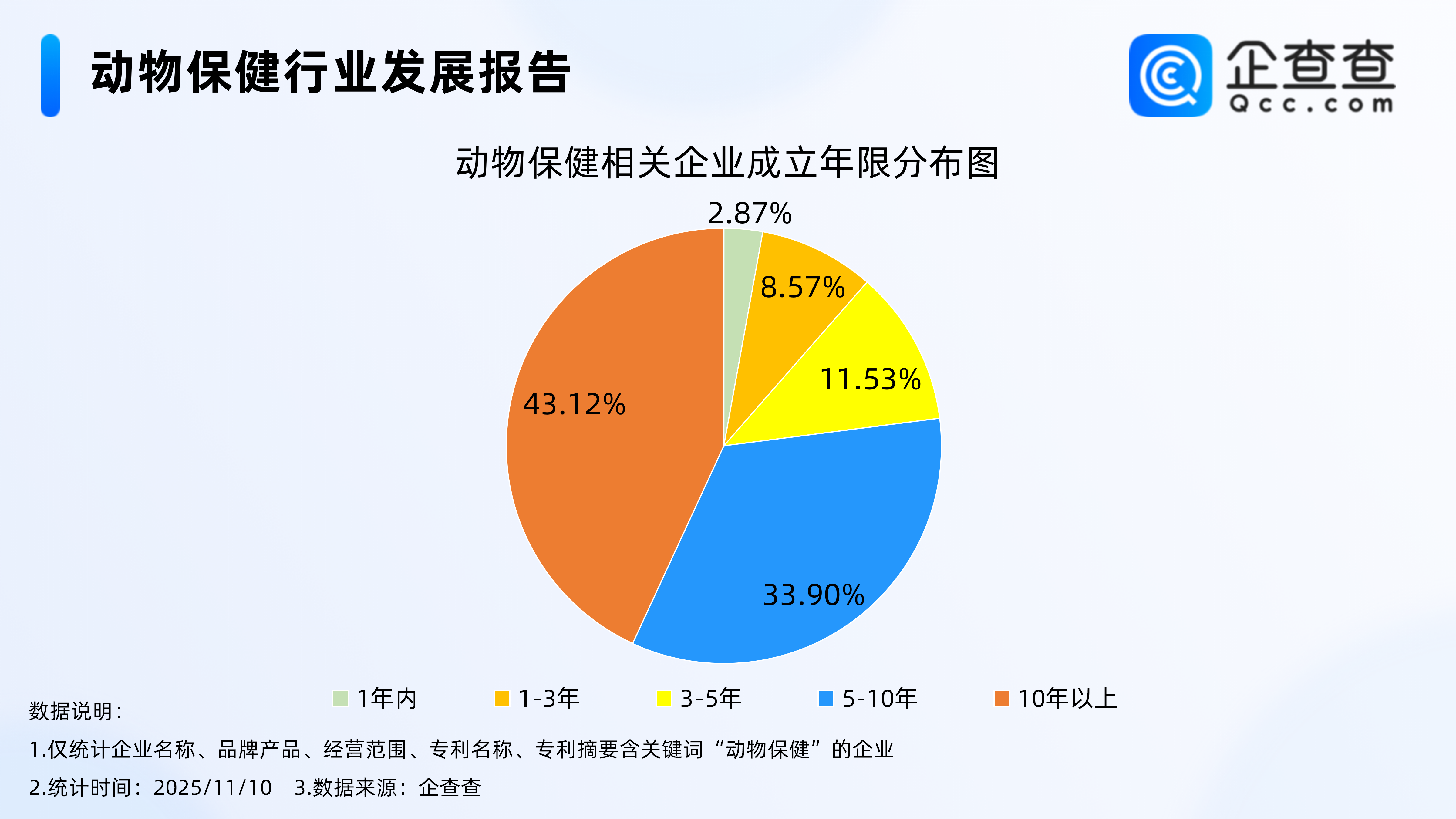 企查查数据显示,截至11月10日,国内现存动物保健相关企业3302家。从经营时间来看,动物保健相关企业多为老牌企业,成立年限在10年以上的企业最多,占比43.12%。其次,成立年限在5-10年的相关企业占比33.90%。注册量方面,2024年全年注册动物保健相关企业121家杭州配资平台有哪些,截至目前,今年已注册83家。