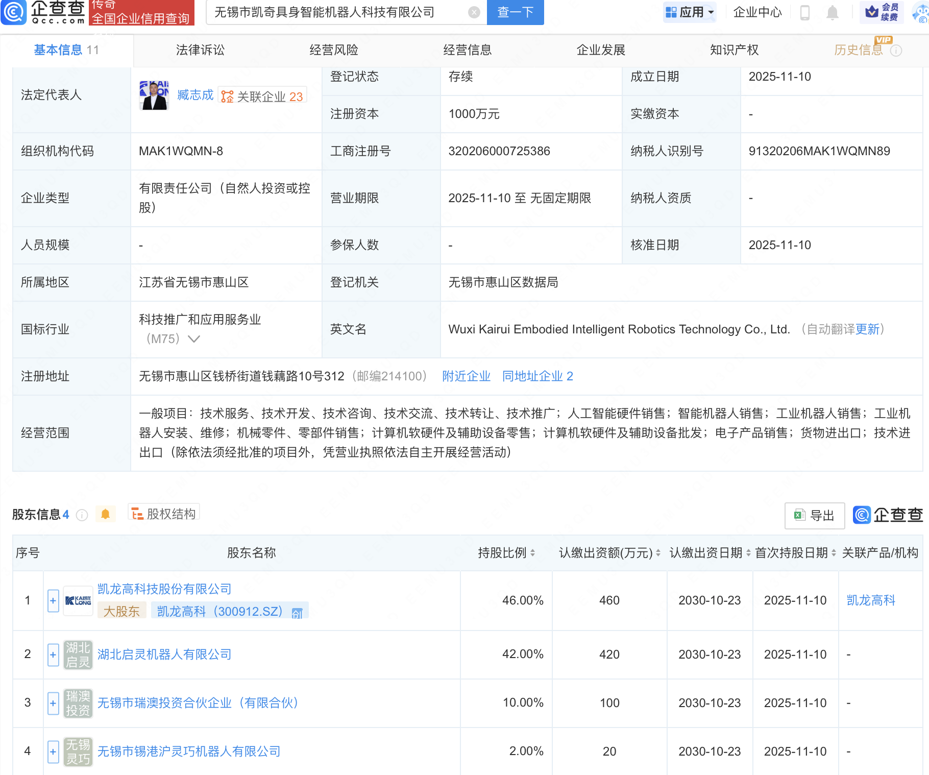 全国股票配资公司排名出炉 凯龙高科等成立具身智能机器人科技公司